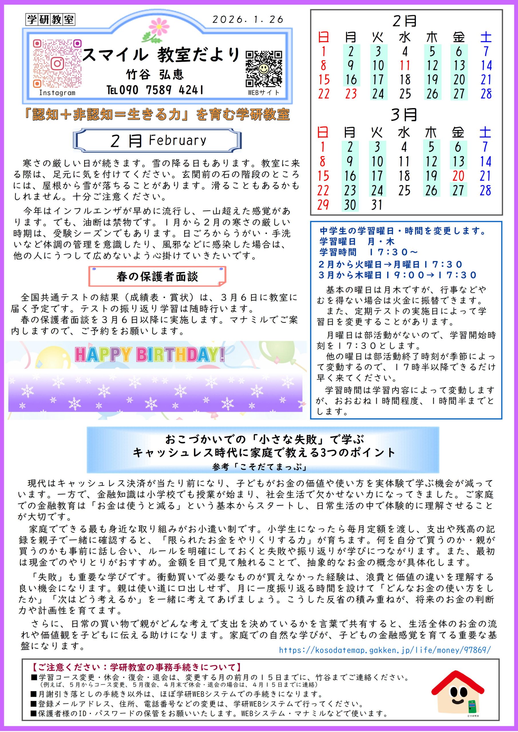 スマイル教室だより」2026年2月